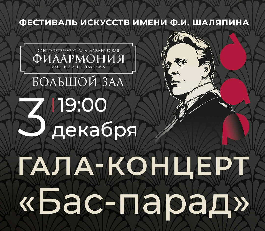 Финальным событием нашего фестиваля «Дар» станет гала-концерт «Бас-парад», который состоится 3 декабря в Большом зале Санкт-Петербургской филармонии им. Д. Д. Шостаковича.