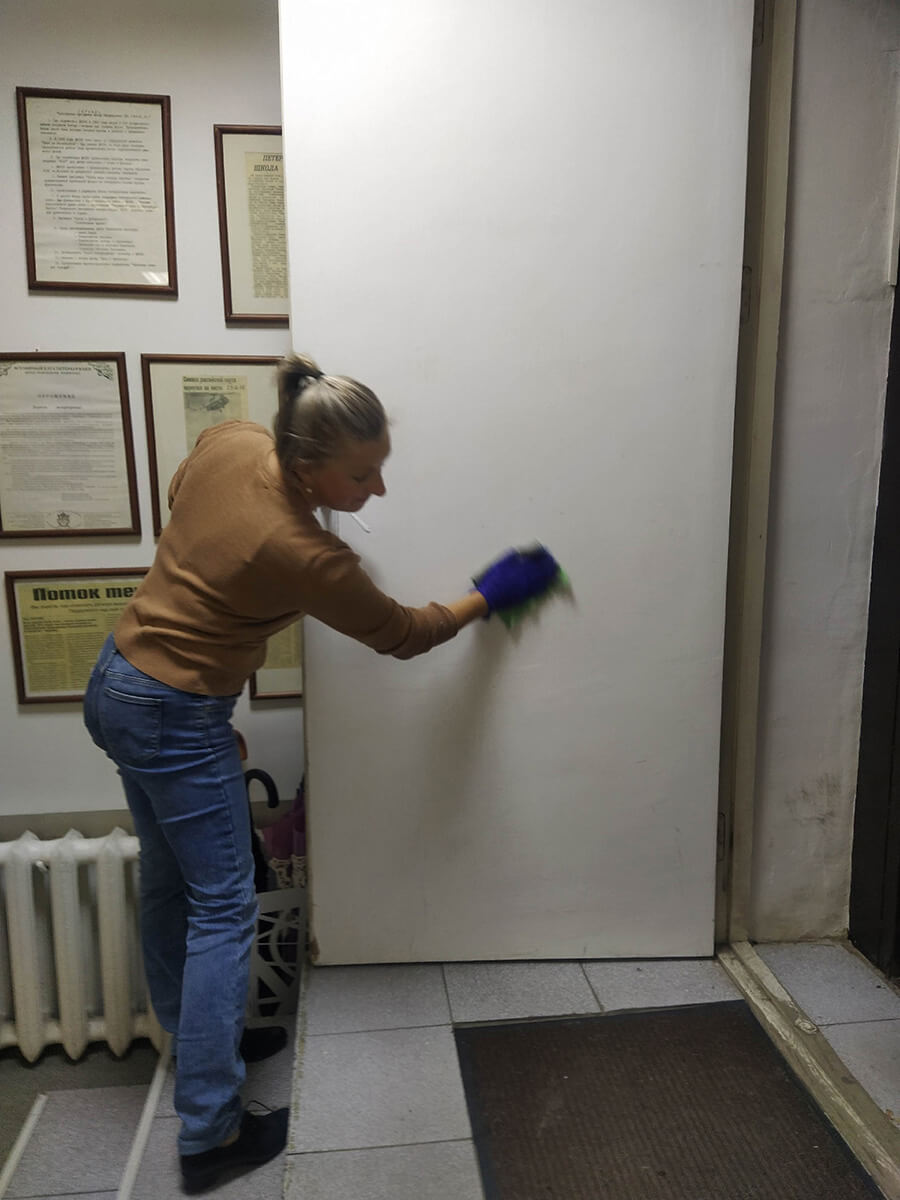 Мы чудесно потрудились дружным коллективом! Навели лоск в выставочном зале, библиотеке, спортзале и везде, куда в обычной жизни заглянуть не удаётся.